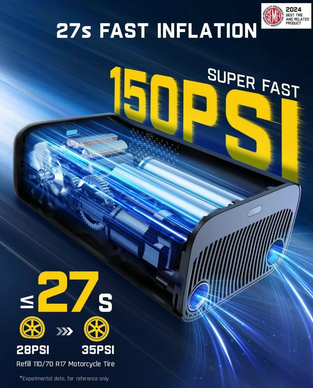 - High-Pressure: Reaches a maximum inflation pressure of 150PSI.
